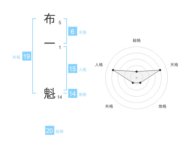 布一 魁さんの総格は20画の1点!