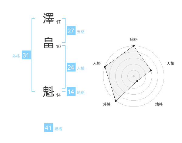 澤畠 魁さんを姓名の画数から五運を鑑定