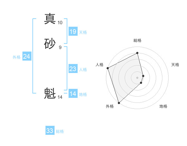 真砂 魁さんの外格は24画の5点!