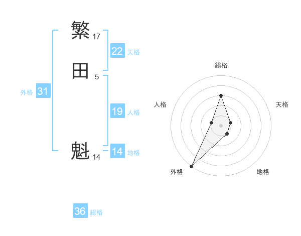 繁田 魁さんの外格は31画の5点!