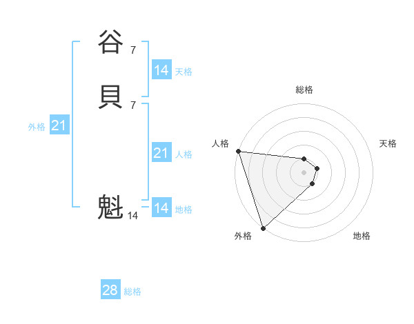 谷貝 魁さんを姓名の画数から五運を鑑定