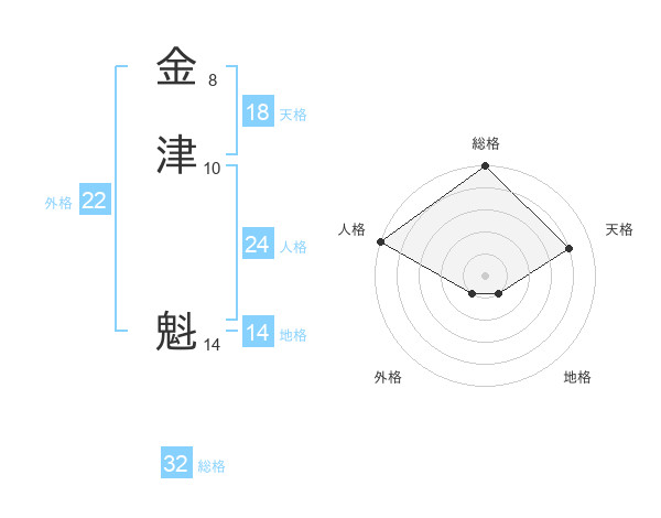 金津 魁さんの外格は22画の1点!