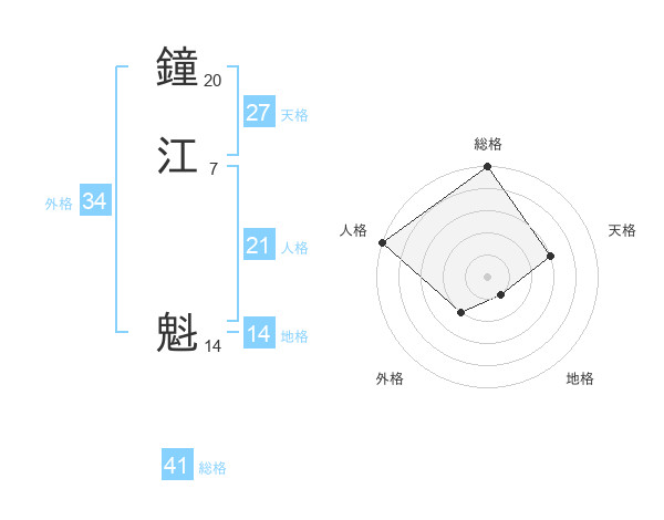 鐘江 魁さんを姓名の画数から五運を鑑定