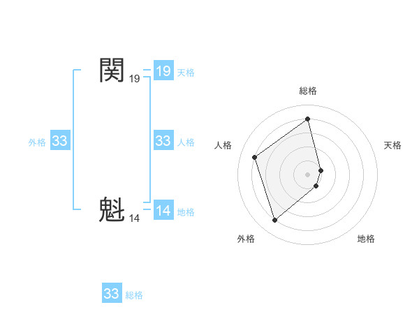 関 魁さんの外格は33画の4点!