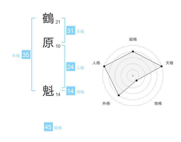 鶴原 魁さんの天格は31画の5点!