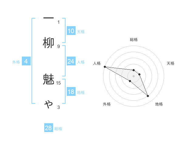 一柳 魅ゃさんを姓名の画数から五運を鑑定