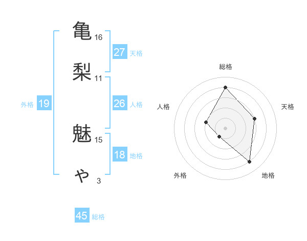 亀梨 魅ゃさんの総格は45画の4点!