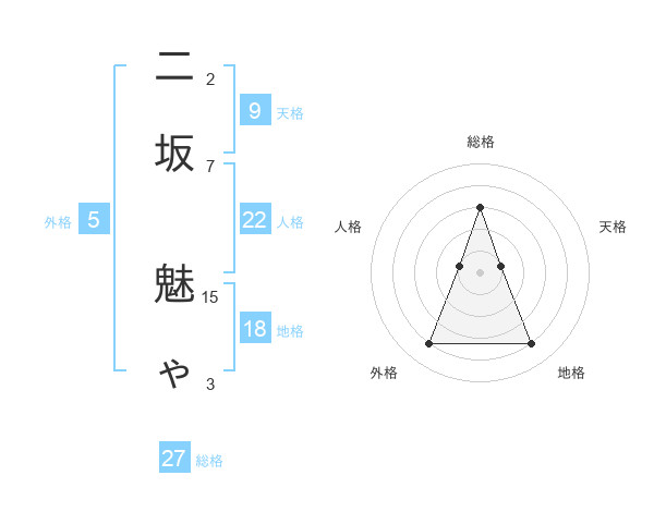 二坂 魅ゃさんの総格は27画の3点!