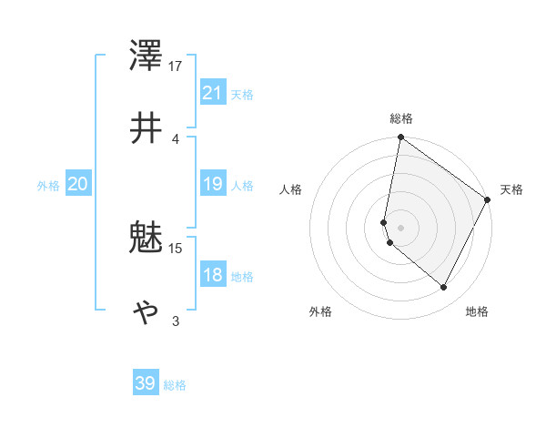 澤井 魅ゃさんの天格は21画の5点!