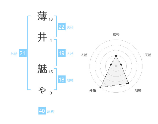 薄井 魅ゃさんの外格は21画の5点!
