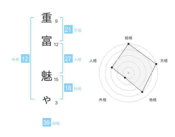 重富 魅ゃさんの総格は39画の5点!