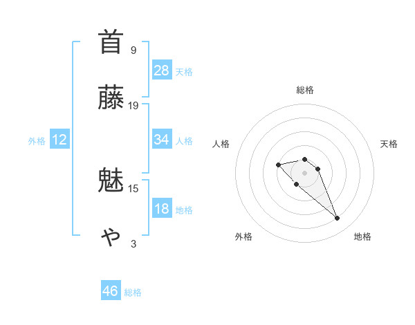 首藤 魅ゃさんを姓名の画数から五運を鑑定