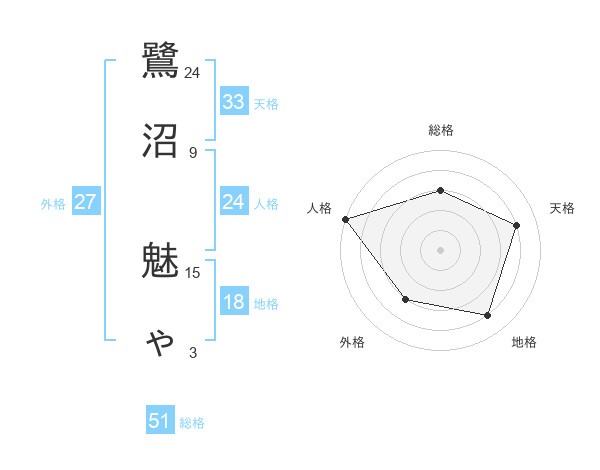 鷺沼 魅ゃさんを姓名の画数から五運を鑑定