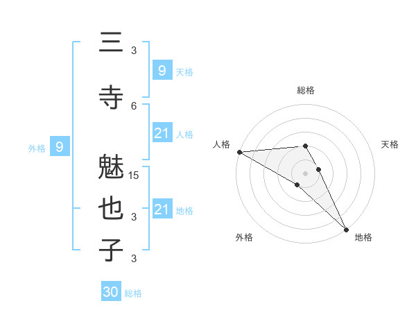 三寺 魅也子さんの地格は21画の5点!