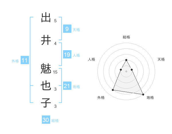 出井 魅也子さんの総格は30画の2点!