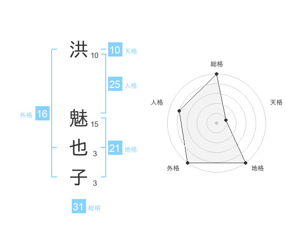 洪 魅也子さんの総格は31画の5点!