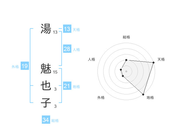 湯 魅也子さんの天格は13画の5点!