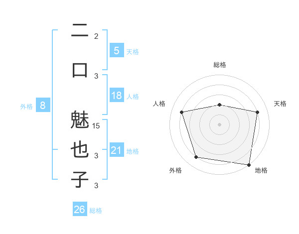 二口 魅也子さんを姓名の画数から五運を鑑定