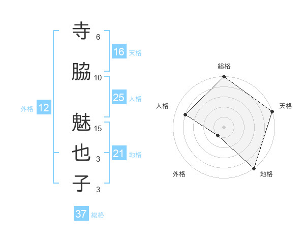 寺脇 魅也子さんの天格は16画の5点!