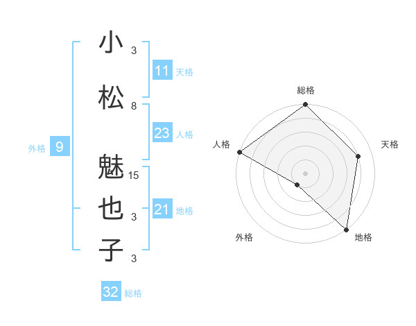 小松 魅也子さんを姓名の画数から五運を鑑定