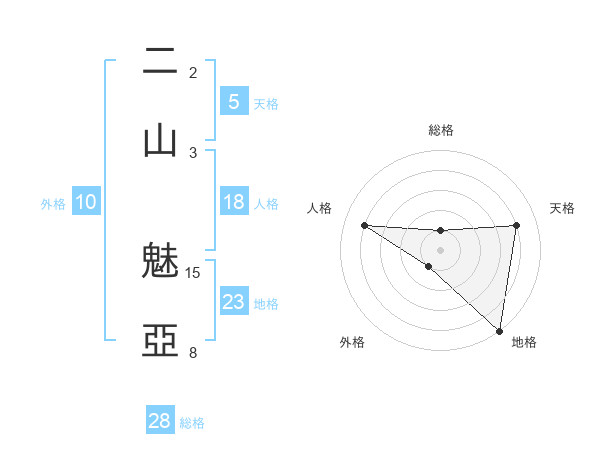 二山 魅亞さんの天格は5画の4点!