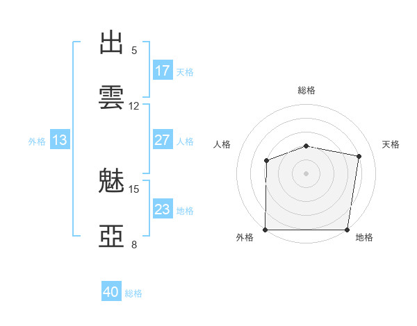 出雲 魅亞さんの外格は13画の5点!