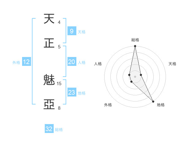 天正 魅亞さんの総格は32画の5点!