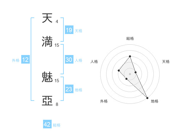 天満 魅亞さんの外格は12画の1点!