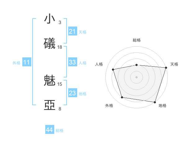 小礒 魅亞さんの外格は11画の4点!