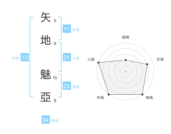 矢地 魅亞さんの外格は13画の5点!