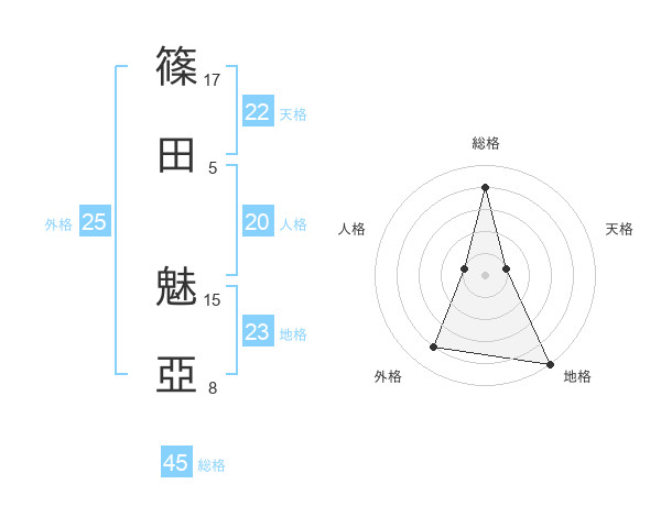 篠田 魅亞さんの天格は22画の1点!