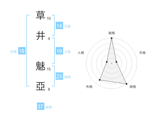 草井 魅亞さんの総格は37画の5点!