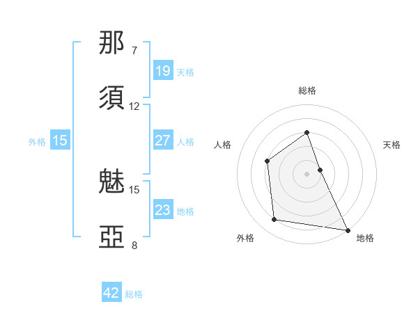 那須 魅亞さんの外格は15画の4点!