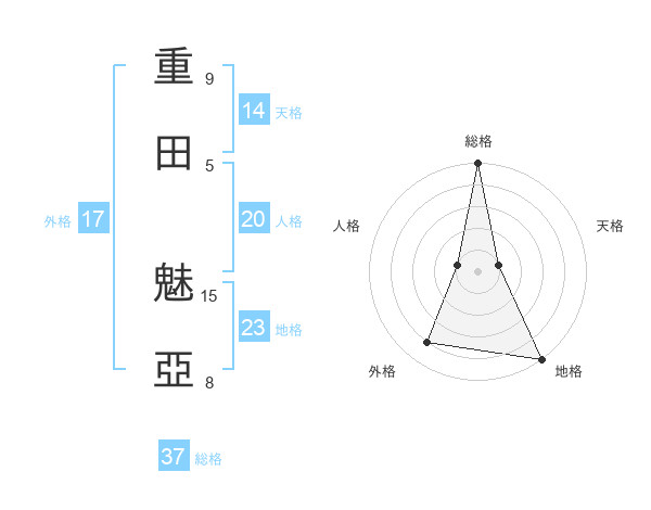 重田 魅亞さんを姓名の画数から五運を鑑定