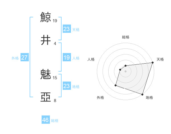 鯨井 魅亞さんの天格は23画の5点!