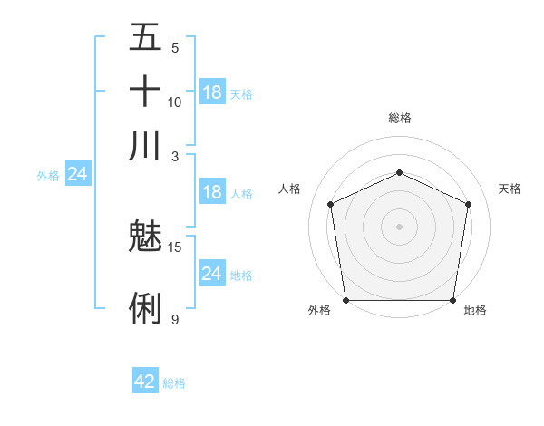 五十川 魅俐さんの外格は24画の5点!