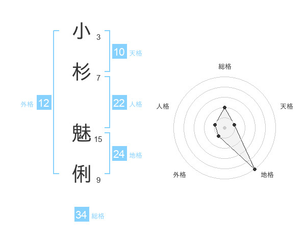 小杉 魅俐さんを姓名の画数から五運を鑑定