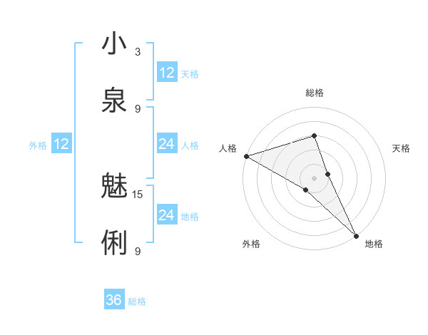 小泉 魅俐さんの外格は12画の1点!