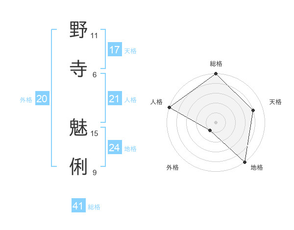 野寺 魅俐さんの人格は21画の5点!