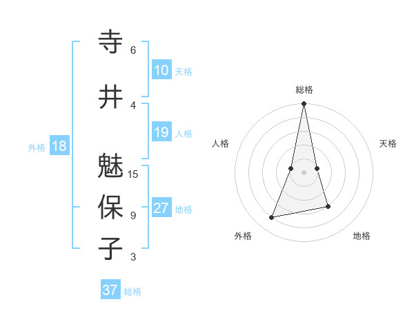 寺井 魅保子さんの総格は37画の5点!