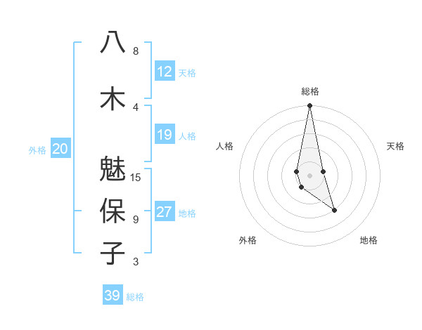 八木 魅保子さんの総格は39画の5点!