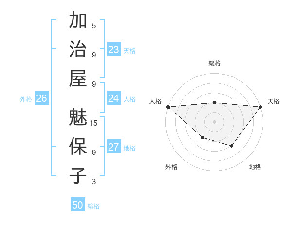 加治屋 魅保子さんを姓名の画数から五運を鑑定
