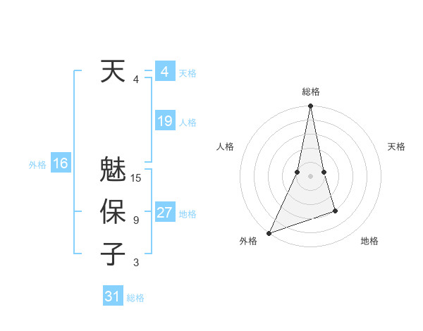 天 魅保子さんの総格は31画の5点!