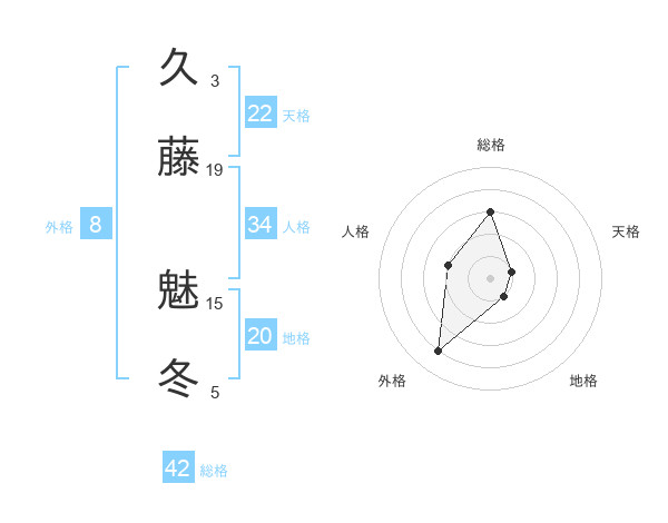 久藤 魅冬さんを姓名の画数から五運を鑑定