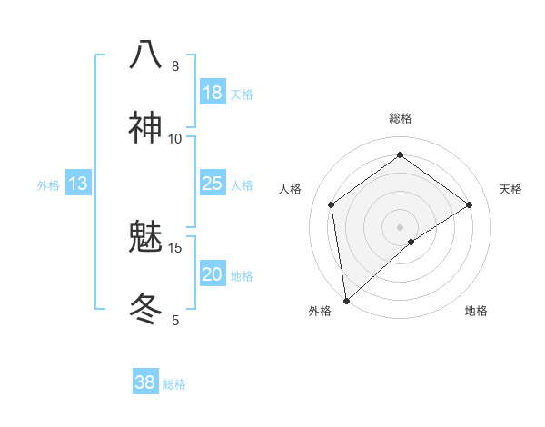 八神 魅冬さんの総格は38画の4点!