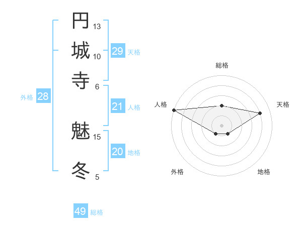 円城寺 魅冬さんの天格は29画の4点!