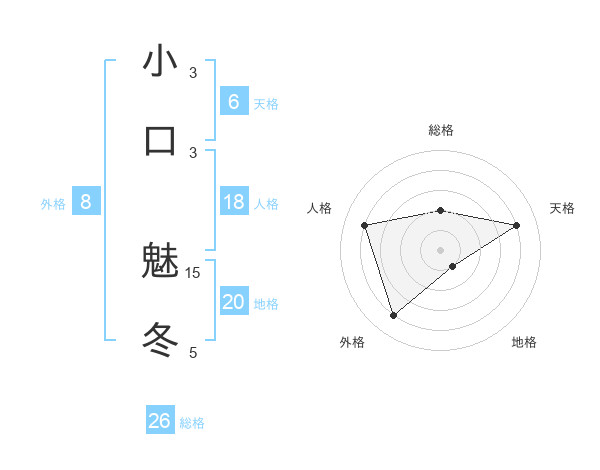 小口 魅冬さんの総格は26画の2点!