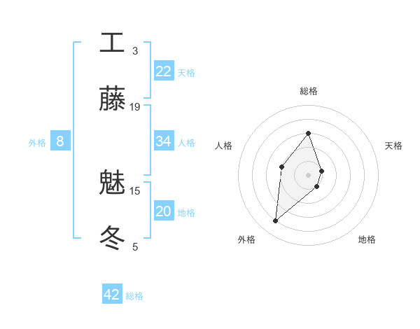 工藤 魅冬さんの天格は22画の1点!