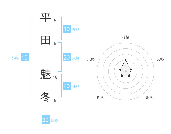 平田 魅冬さんを姓名の画数から五運を鑑定