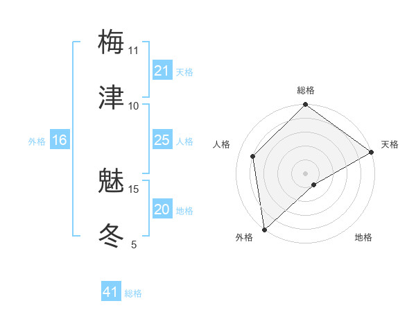 梅津 魅冬さんを姓名の画数から五運を鑑定